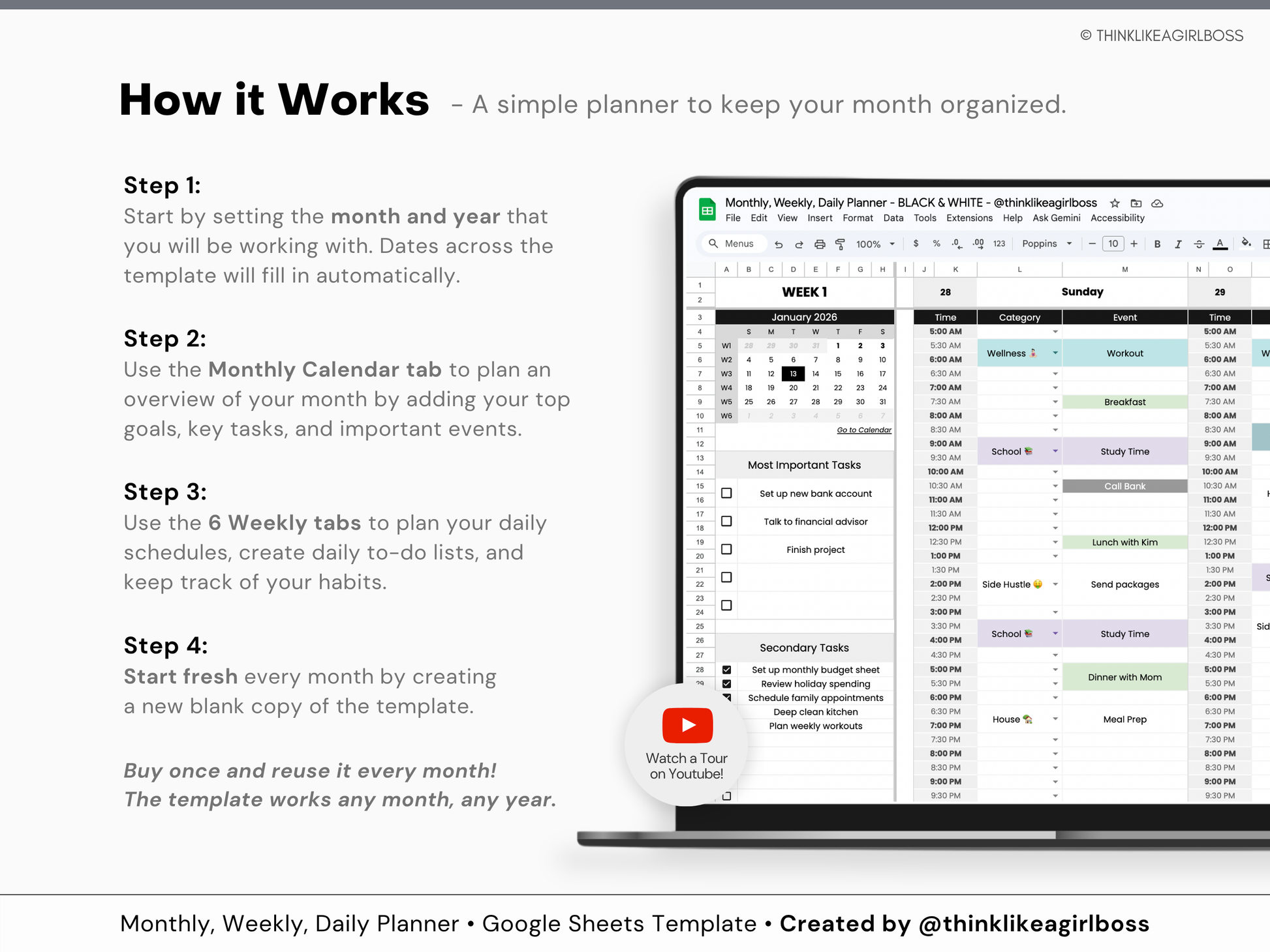 3. To begin using your spreadsheet, just watch the video walkthrough and follow the instructions provided in the PDF.