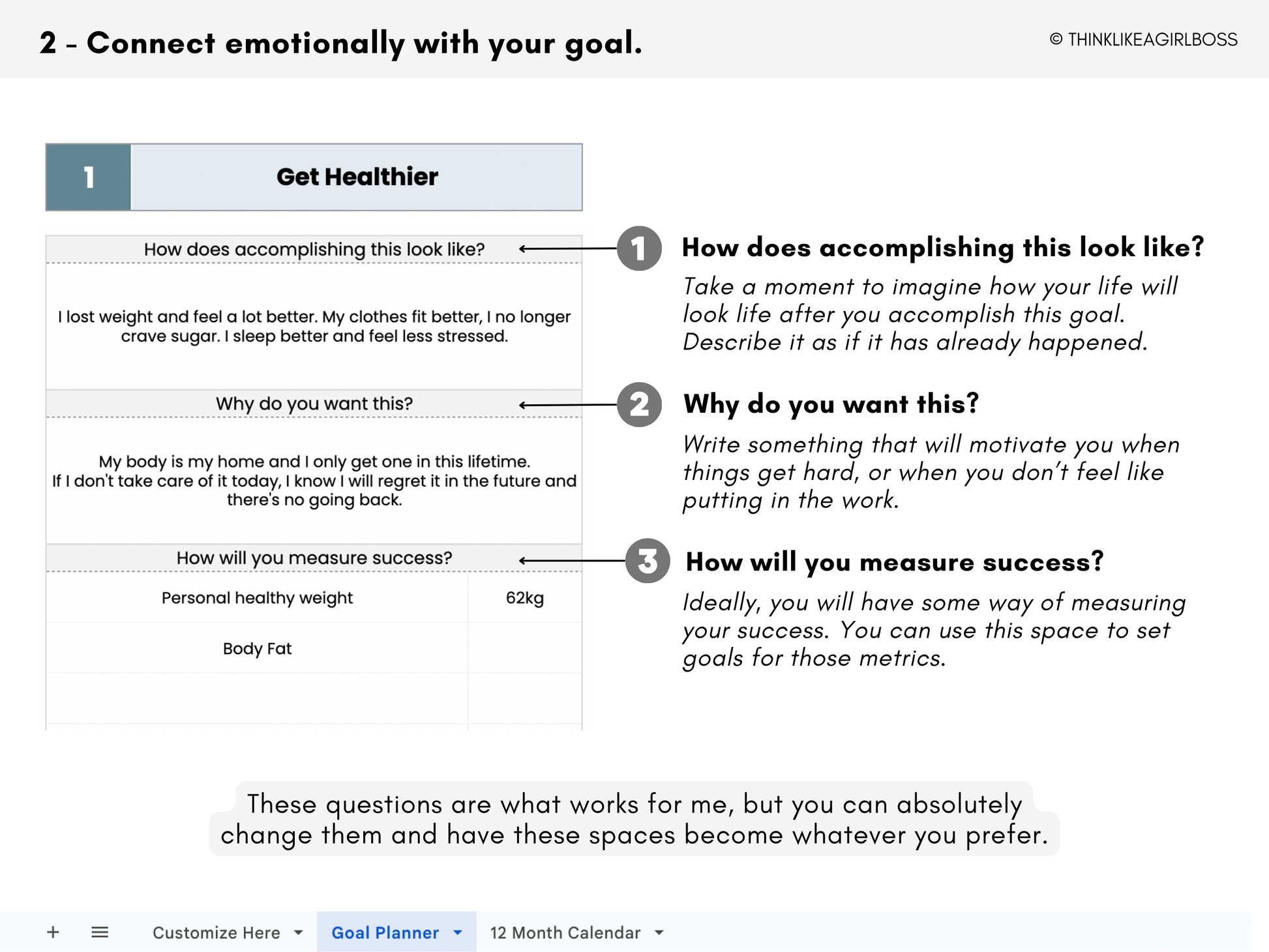 - The place where you will connect emotionally with your goals and create a plan for future you to follow.